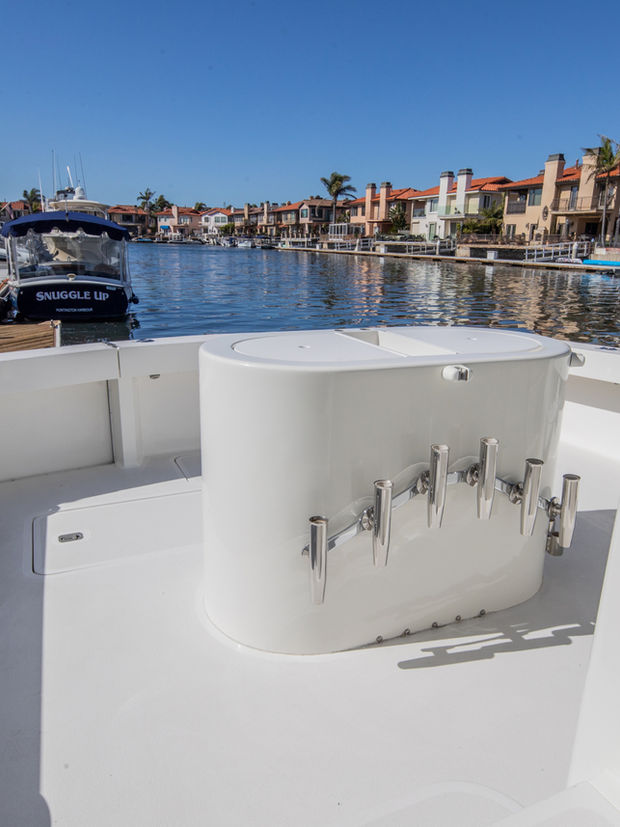California Style Full Stainless Bow Rail: Offers safety and style with a sleek stainless steel design.